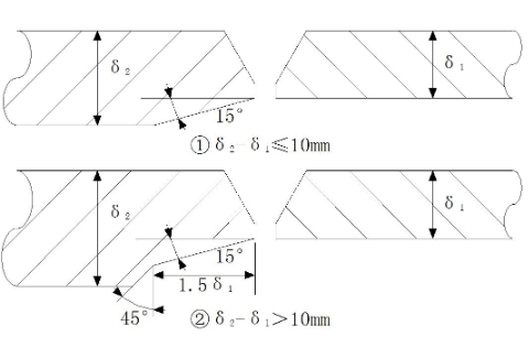 內(nèi)壁錯(cuò)邊量不宜超過壁厚的10%,且≯2mm;外壁錯(cuò)邊量≯3mm。
