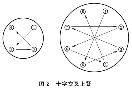 注:安裝橡膠接頭的螺栓應(yīng)使用單頭螺栓(螺母朝向管道)穿過球體法蘭,旋轉(zhuǎn)球體法蘭對(duì)準(zhǔn)管道主體法蘭十字交叉緊固(參考下圖禁錮順序)螺栓,初次承壓后(如: 安裝試壓等) 再次將螺栓重新加壓擰緊即可。。