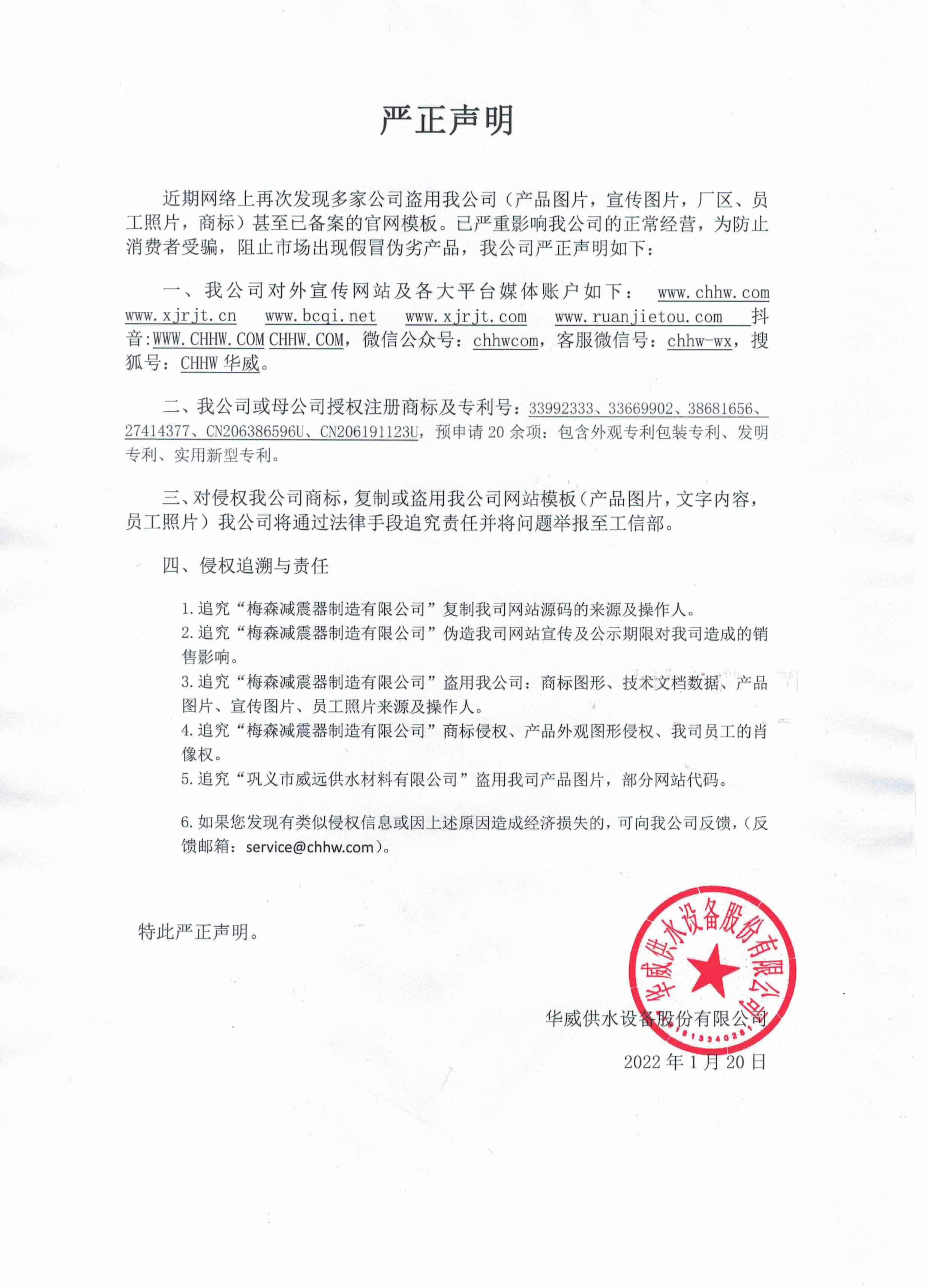 近期網(wǎng)絡(luò)上再次發(fā)現(xiàn)多家公司盜用我公司(產(chǎn)品圖片,宣傳圖片,廠區(qū)、員工照片,商標(biāo))甚至已備案的官網(wǎng)模板。已嚴(yán)重影響我公司的正常經(jīng)營,為防止消費者受騙,阻止市場出現(xiàn)假冒偽劣產(chǎn)品,我公司嚴(yán)正聲明如下: