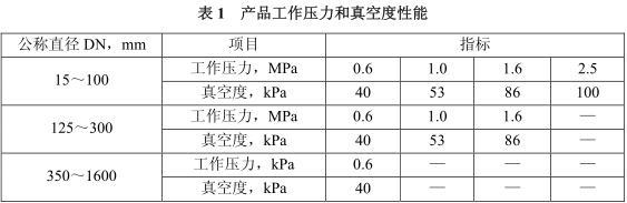 5.6可曲撓橡膠接頭的工作壓力和真空度應(yīng)符合CJ/T 208的規(guī)定(見表1);試驗(yàn)壓力和爆破壓力分別應(yīng)不小于工作壓力的1.5倍和3倍。