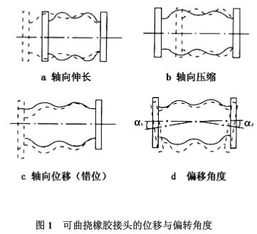 指可曲撓橡膠接頭在與中軸線相垂直的兩個端面中心的相對位移(見圖1-c)。